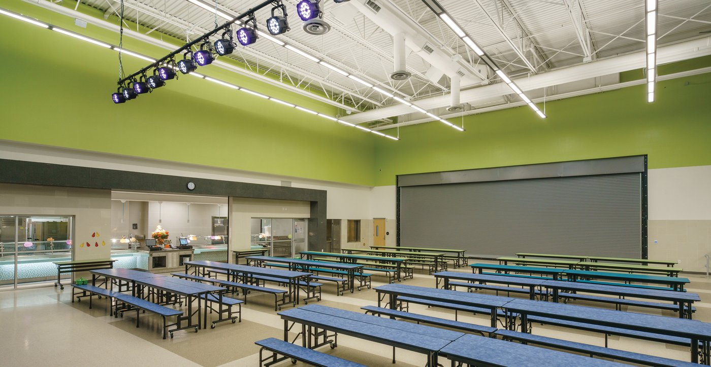This project is a replacement school for the old Ralph Bunche Elementary School on the same site. The old school had already been abandoned and demolished, but the District’s growth pattern required this site to be reutilized. The new 2-story school serves 800 students in grades Pre-K to 6 and incorporates many 21st Century learning elements including collaboration, multi-function spaces and shared community-use spaces.